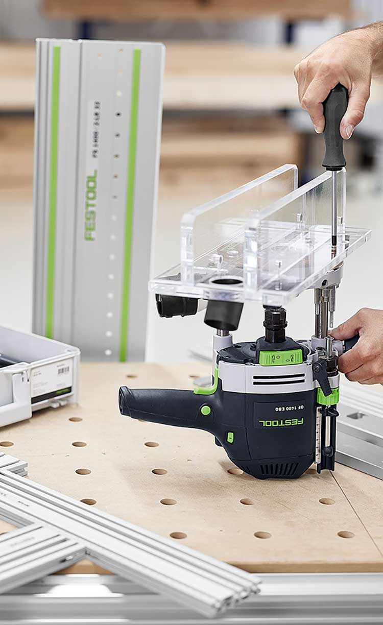 Virtually unlimited possible applications for your router? Whether you want to create round or rectangular cut-outs or are looking to join your next chest of drawers with box joints or dovetail joints. In our varied range of accessories, you will also find the right routing templates and fixtures for your application.