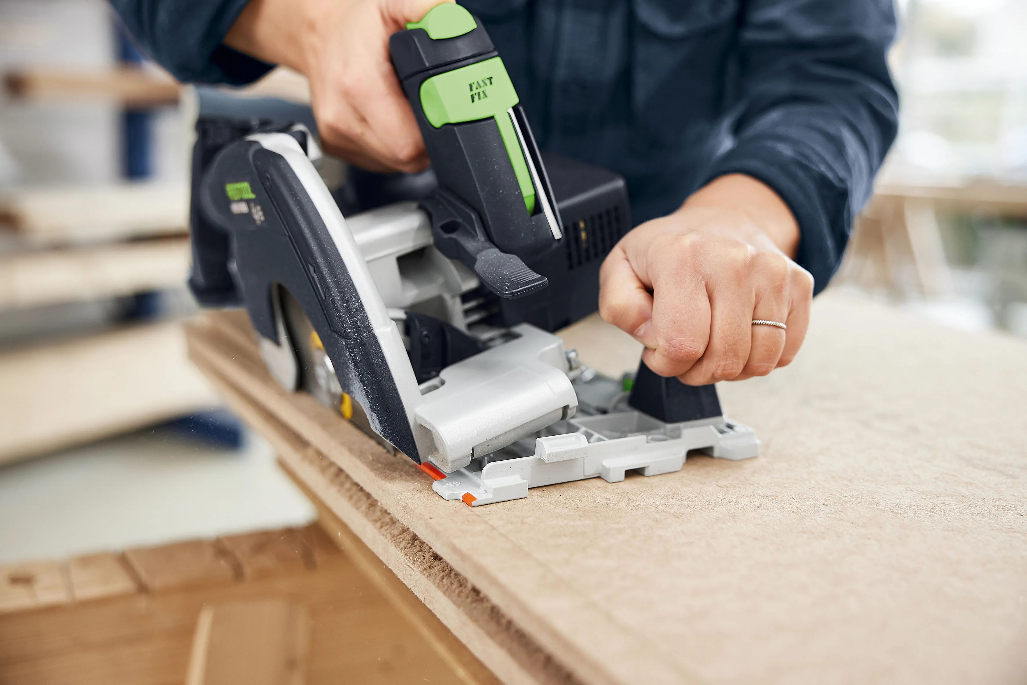 Maneuverability, precision and safety - with the new HKC 55 K, Festool is setting new standards in the field of mobile cordless portable circular saws. The German manufacturer has developed this powerful saw especially for professional craftsmen who no longer want to compromise on mobile cross-cuts on the construction site or in the workshop. With innovative functions, a powerful 8.0 Ah battery pack and perfectly coordinated system components, the HKC 55 K offers everything you need for efficient and safe work.