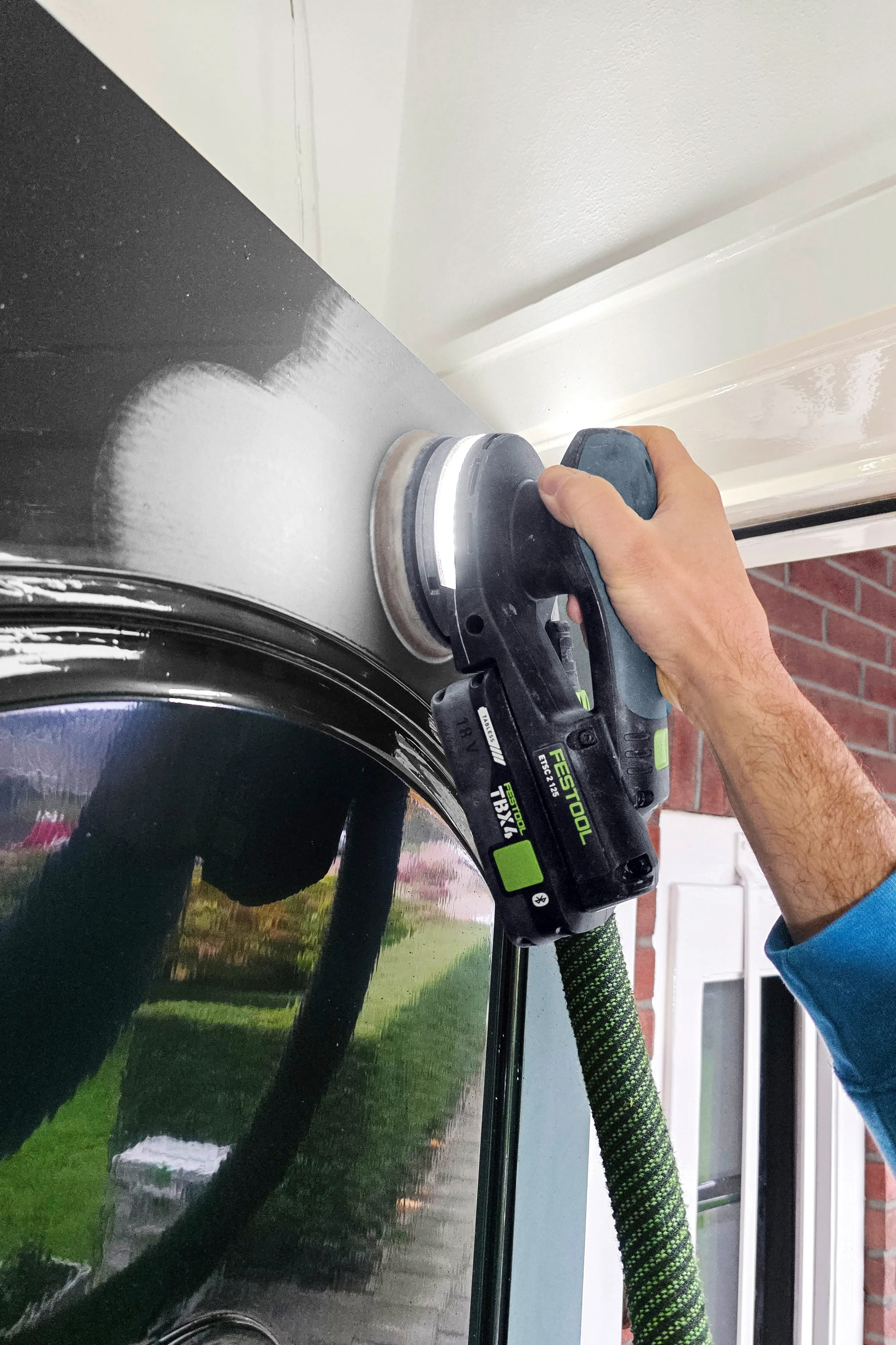 Luke has internalised that surface preparation internalised, is crucial for painting work. crucial for painting work. And that's exactly what Festool sanders are made for. Luke particularly appreciates that Festool is always thinking one step thinking one step ahead. "The DTSC 200 Delta sander really surprised me. really surprised me. The fact that you can use the new delta sandpaper can be used three times is great. The Light module is also very helpful." A nod of approval for the new Tabless TBX 4 battery from him. Especially on the he benefits from the fact that the cordless sanders run for longer and can be charged even faster. can be charged even faster.