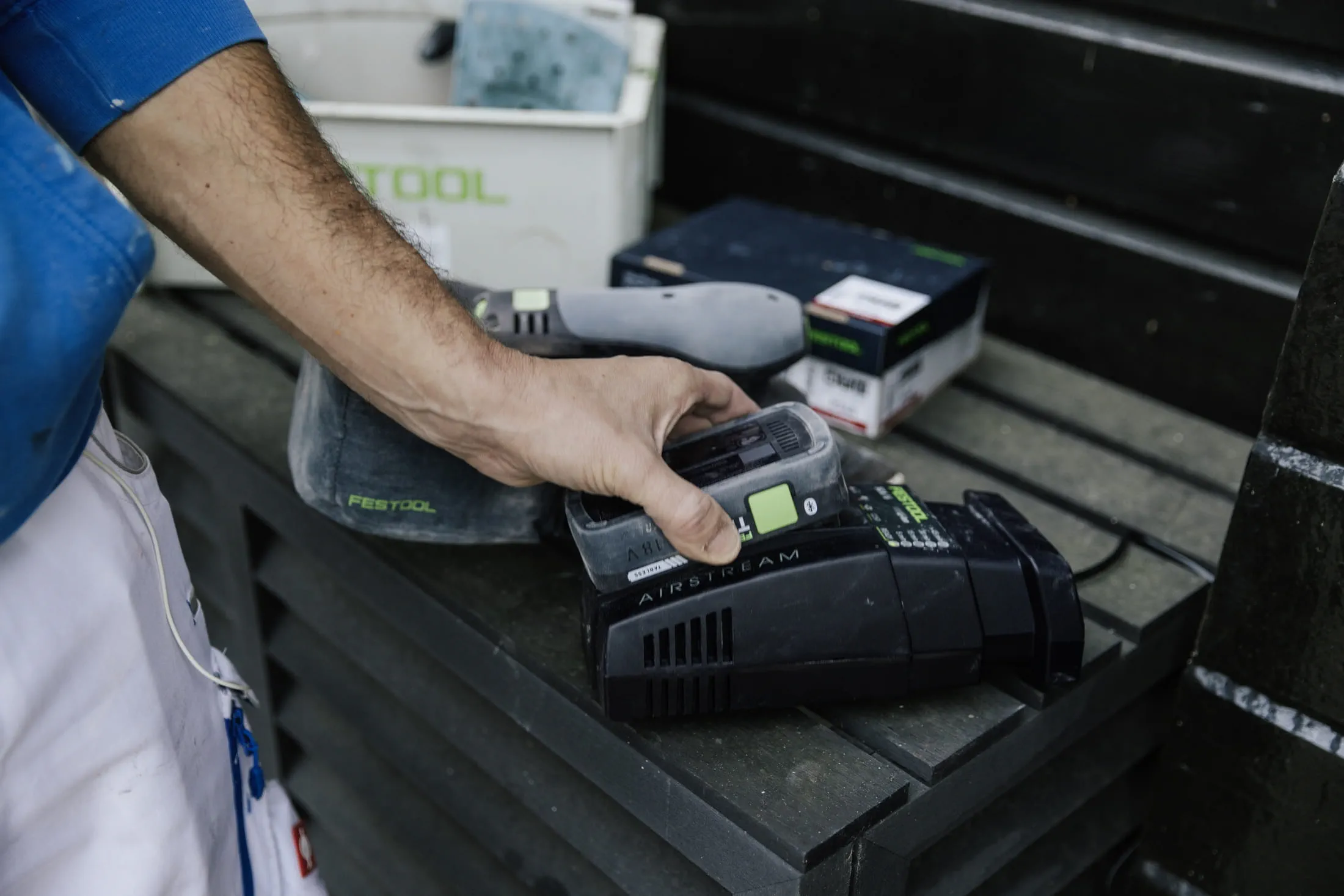 Dutch painter Luke de Jager does a lot of sanding. With various Festool cordless sanders and always with dust extraction. Often for days on end. In all weathers.