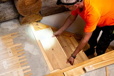 We have the opportunity to get right to the heart of our customers' wishes because we are a small workshop. There aren't all that many small businesses like ours, capable of doing what we do, here in Finland. This is surprising, since it isn't actually especially profitable for a parquet company to just produce en masse. We put our trust in individual solutions – in this case, our customer ordered ship-style flooring, which of course had to match the rest of the surroundings. From the log cabin, you have a wonderful view of the sea. The flooring therefore needs to suit the maritime atmosphere perfectly.
