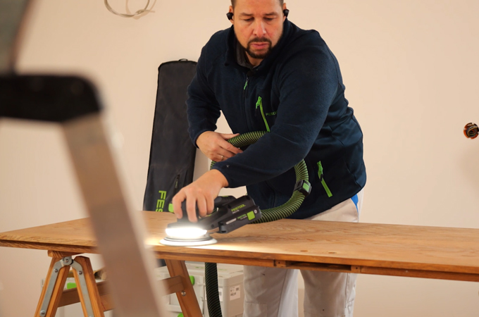 Prepare a clean and dust-free workplace. We recommend a suitable system consisting of a vacuum cleaner, sander and suitable abrasives.