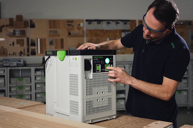 Planed wood surfaces have so-called knife marks, also known as plane marks, caused by the Planer blades. These must be sanded before surface coating. This results in a smoother, more homogeneous surface and the surface coating has a better grip or can penetrate the wood better. If you don't have a large stationary sanding machine, this step can be carried out using a hand-held sanding machine. The ROTEX is ideal for this because it combines coarse sanding and random orbital sanding in one machine. As this work is mainly carried out in the workshop, it is advantageous to set up the workplace accordingly. That is why we would like to take a brief look at our system accessories here.