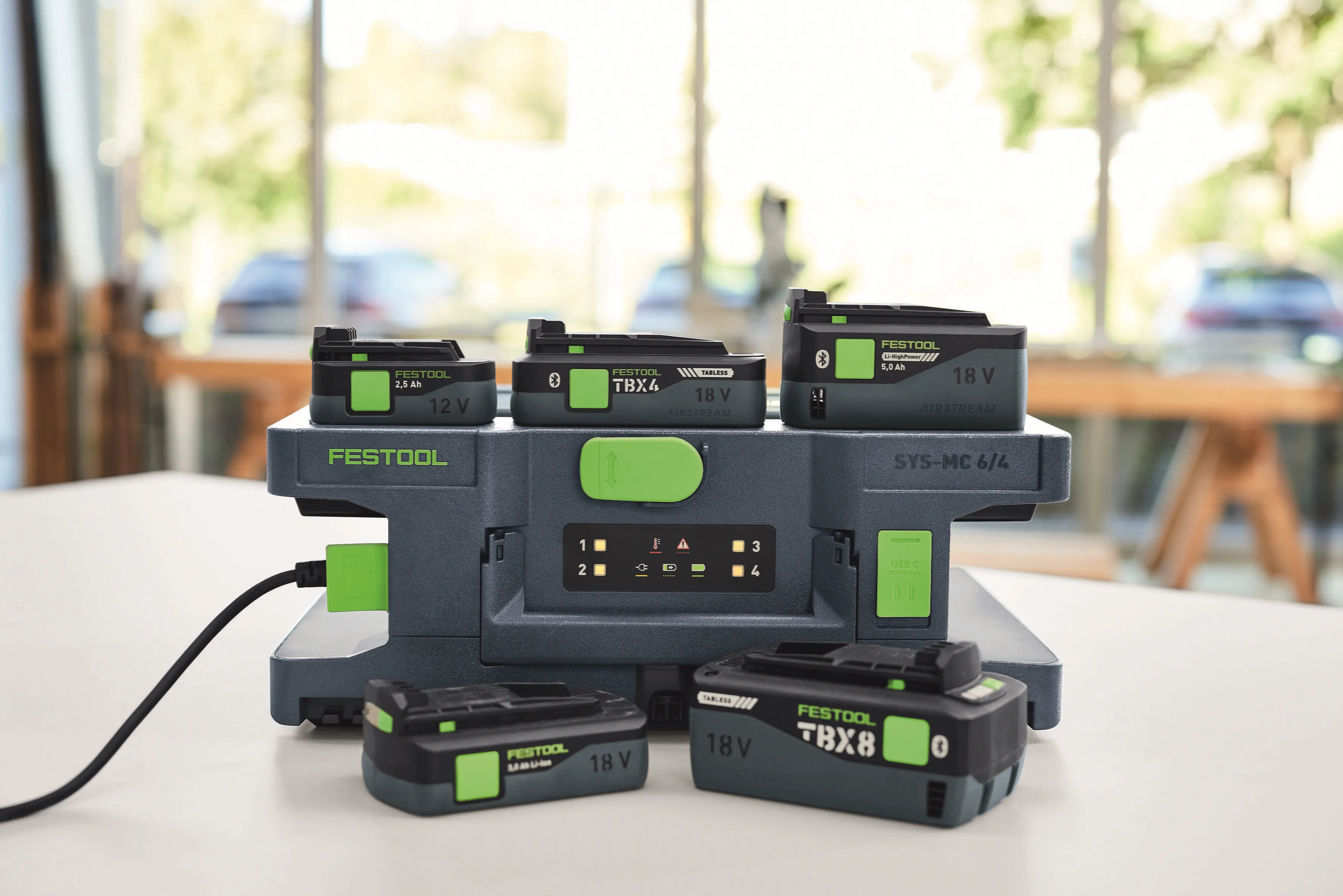 With the new SYS MC 6/4 quick charger, Festool is sending a strong signal to everyone who works at full power every day. The multi-charger expands the 18- volt portfolio with a solution that noticeably reduces stress, speeds up processes and ensures a working environment that simply runs smoothly. Fully integrated into the Systainer system, it is aimed at professionals who need to rely on their battery packs just as much as their tools – and who value clean organisation and maximum operational readiness.