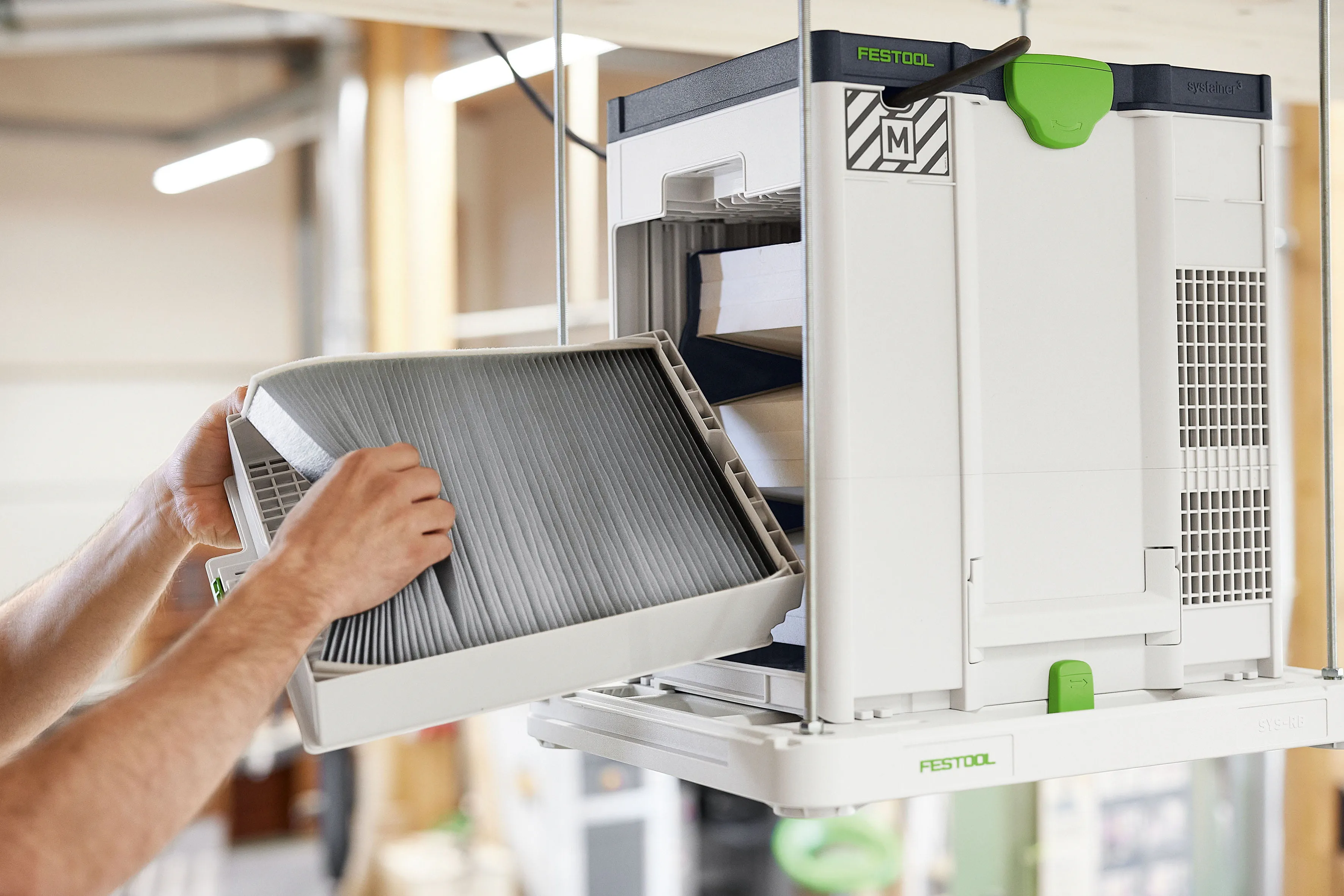 With the new CT ASA FLX extraction arm, Festool enhances the possibilities of a flexible, ergonomic hose management solution – both on-site and in the workshop. The overheadguided extraction arm ensures comfortable operation without the risk of tripping or snagging. The CT ASA FLX is available in two variants: The mobile CT ASA FLX J, ideal for on-site use, can be directly attached to a CT extractor or a multifunction table (MFT). Thanks to its telescopic tube, the height can be adjusted as required. Modular chain links allow the arm's length to be quickly altered or rolled up and stowed in the SYS-MFT for convenience. It is particularly suited for sanding, cutting, and milling tasks while on the move. For stationary workplaces in workshops, the CT ASA FLX W extraction arm has been designed, as it can be mounted on the wall. This variant is also pivotable, modular in design, and offers integrated hose and cable management. It is perfectly compatible with pre-separators and CT extractors. Both variants enhance comfort and safety by keeping hoses and cables off the ground, thereby significantly increasing freedom of movement. Additionally, Festool offers a new activated carbon filter VF-AK-SYS-AIR for the SYS-AIR air cleaner. This reliably absorbs unpleasant odours such as paint fumes, mould, or solvents, improving indoor air quality during renovation and workshop tasks.