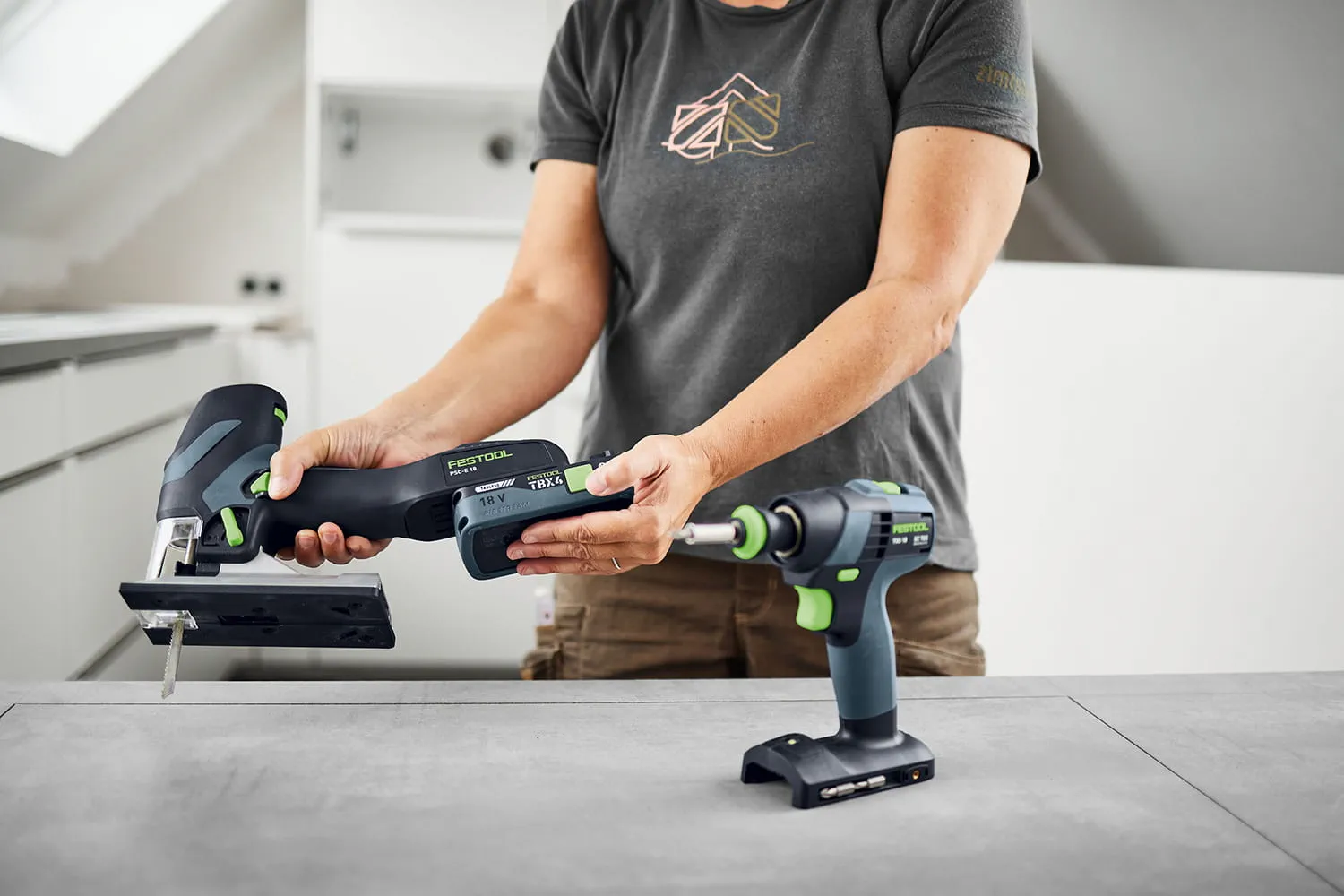 At the heart of the new products for April is the new PSC-E 18, a particularly lightweight, compact cordless pendulum jigsaw specifically designed for assembly and fitting work. Its development follows three clear guiding principles: it fits exceptionally well in the hand, it is particularly easy to operate, and it delivers exactly the battery power that professional users need in their day-to-day work. Weighing just 2.3 kilograms including the battery pack and featuring an ergonomically slim design, it enables precise, balanced and fatigue-free working, even over extended periods. The non-slip soft-grip surface ensures a secure hold, whilst the triple blade guide guarantees particularly stable blade guidance and angle-accurate cuts in materials up to 40 millimetres thick. The fixed 90-degree table allows for immediate, precise sawing without the need for adjustment – a significant advantage on the construction site and during assembly work. The 23-millimetre stroke, multi-stage pendulum stroke adjustment and smooth automatic start-up control ensure fast, material-appropriate working. The tool-free, one-handed saw blade change significantly increases flexibility in varying application scenarios. At the same time, the blow function keeps the kerf clear. A mobile dust extraction unit can also be connected for low-dust working. A plastic base plate protects sensitive surfaces, whilst the clip-on splinter guard ensures tear-free cuts and reduces the need for reworking. Complemented by the new TBX 4 battery pack with innovative tabless cell technology, the PSC-E 18 combines high performance with low weight and a highly efficient power supply.