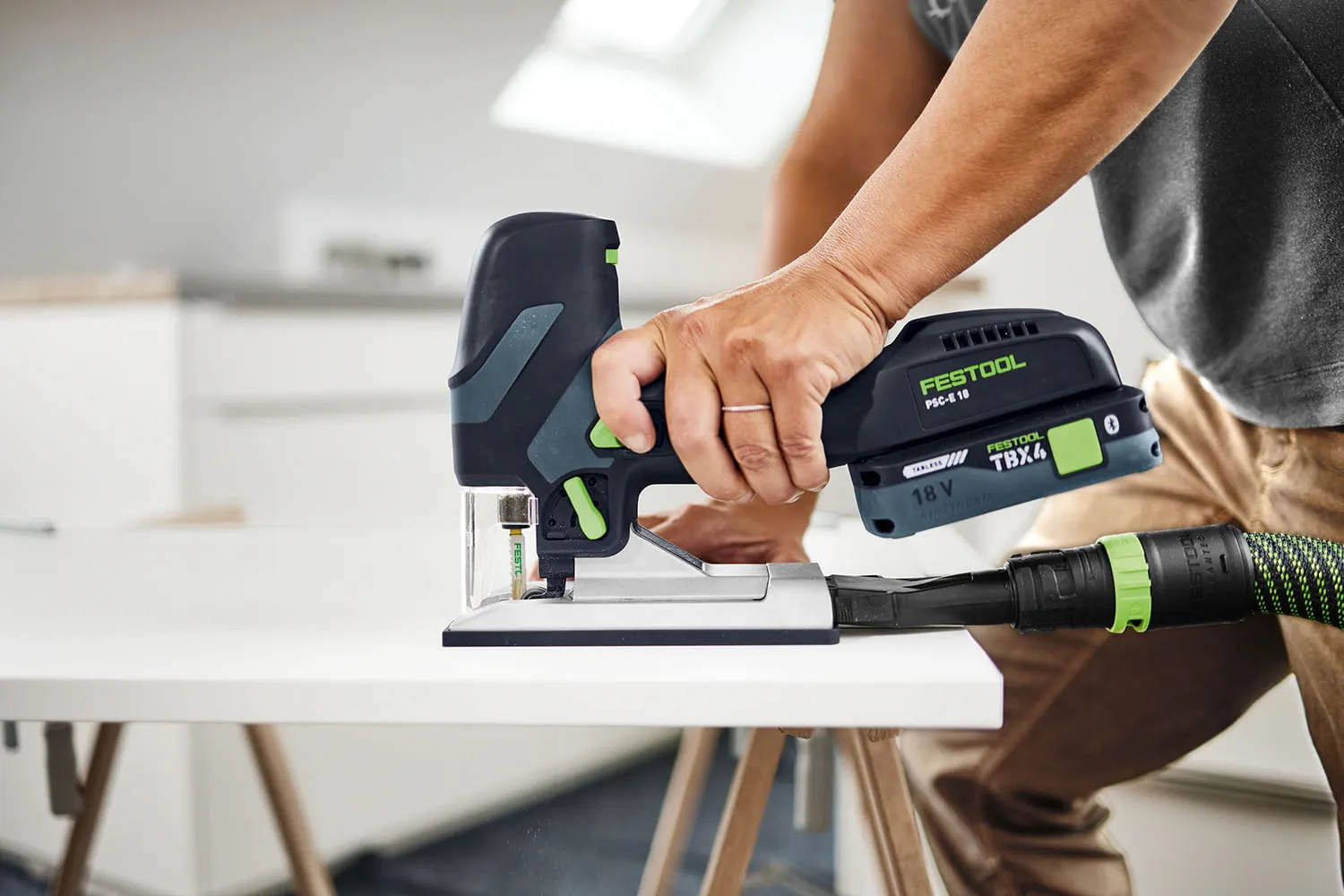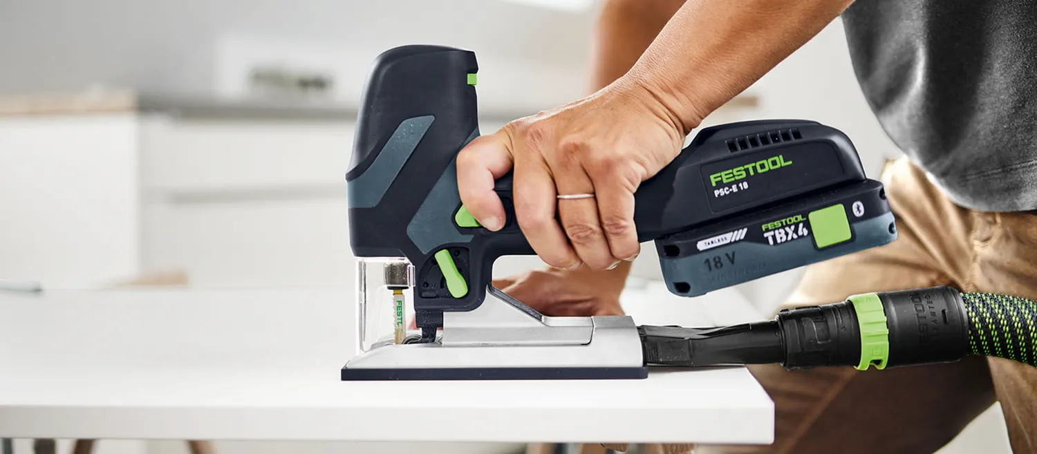 With the launch of the new PSC-E 18 cordless pendulum jigsaw and several new system and accessory innovations, Festool is once again strengthening its position as a specialist in professional sawing solutions. This new addition complements a sawing system that now covers an impressive range: from various precise plunge saws and the mobile Systainer table saw CSC SYS 50 to various jigsaws, mitre saws and the corded table saw TKS 80 for woodworking and interior finishing. Together with the HK/HKC saws, the KSC 60 and SYMC 70 mitre saws, and the tried-and-tested guide rail system, this creates a diverse range of saws that appeals equally to joinery workshops, interior finishing firms and timber construction specialists.