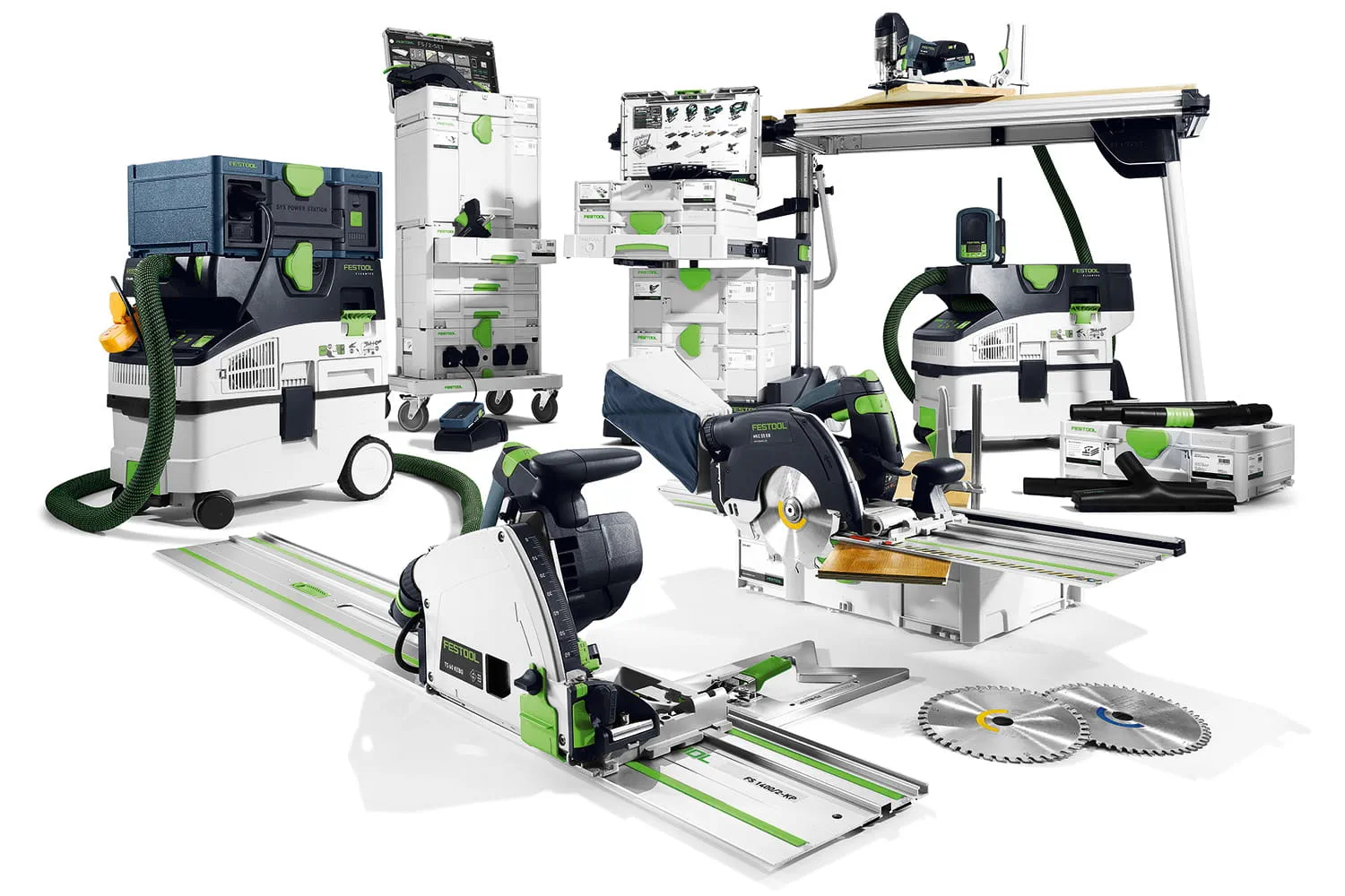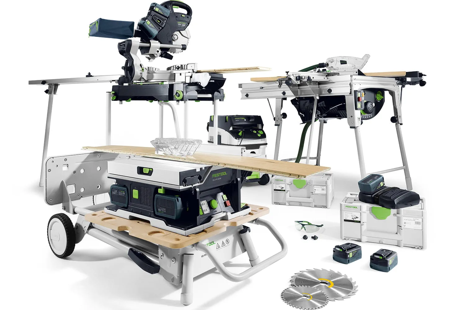With the launch of the PSC-E 18, Festool’s sawing system is expanding: The tried-and tested plunge saws TS 55 F, TSC 55 K, TSC 55 KS and TS 60 K, as well as the scoring plunge saw TSV 60 K, continue to form the core of the range for precise, low-splinter cuts in interior finishing and assembly. The HK/HKC 55 and 60 are available for high performance rip and cross-cutting, whilst the KSC 60 and SYMC 70 mitre saws enable millimetre-precise cutting to length and trimming, even of large cross-sections. In the field of table saws, Festool covers both mobile and stationary applications: The CSC SYS 50 offers maximum precision in a compact Systainer format for assembly and mobile interior finishing, whilst the TKS 80 is a powerful corded table saw designed for safe, precise and high-performance workshop tasks – particularly for joiners, timber construction and finishing trades requiring a reliable stationary solution.
