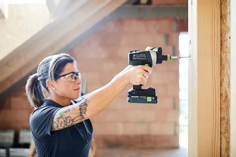 And if any hazards arise when drilling: With the TPC cordless percussion drill and the TDC cordless drill, the electronic KickbackStop reduces the risk of the drill suddenly jamming in the material, thereby minimising the risk of twisting your wrist. In addition, always wear ear protection and safety glasses when drilling.