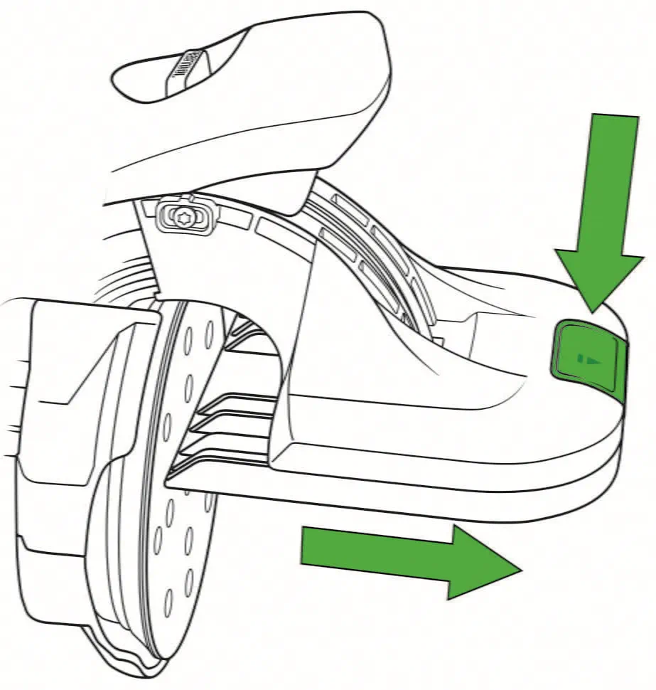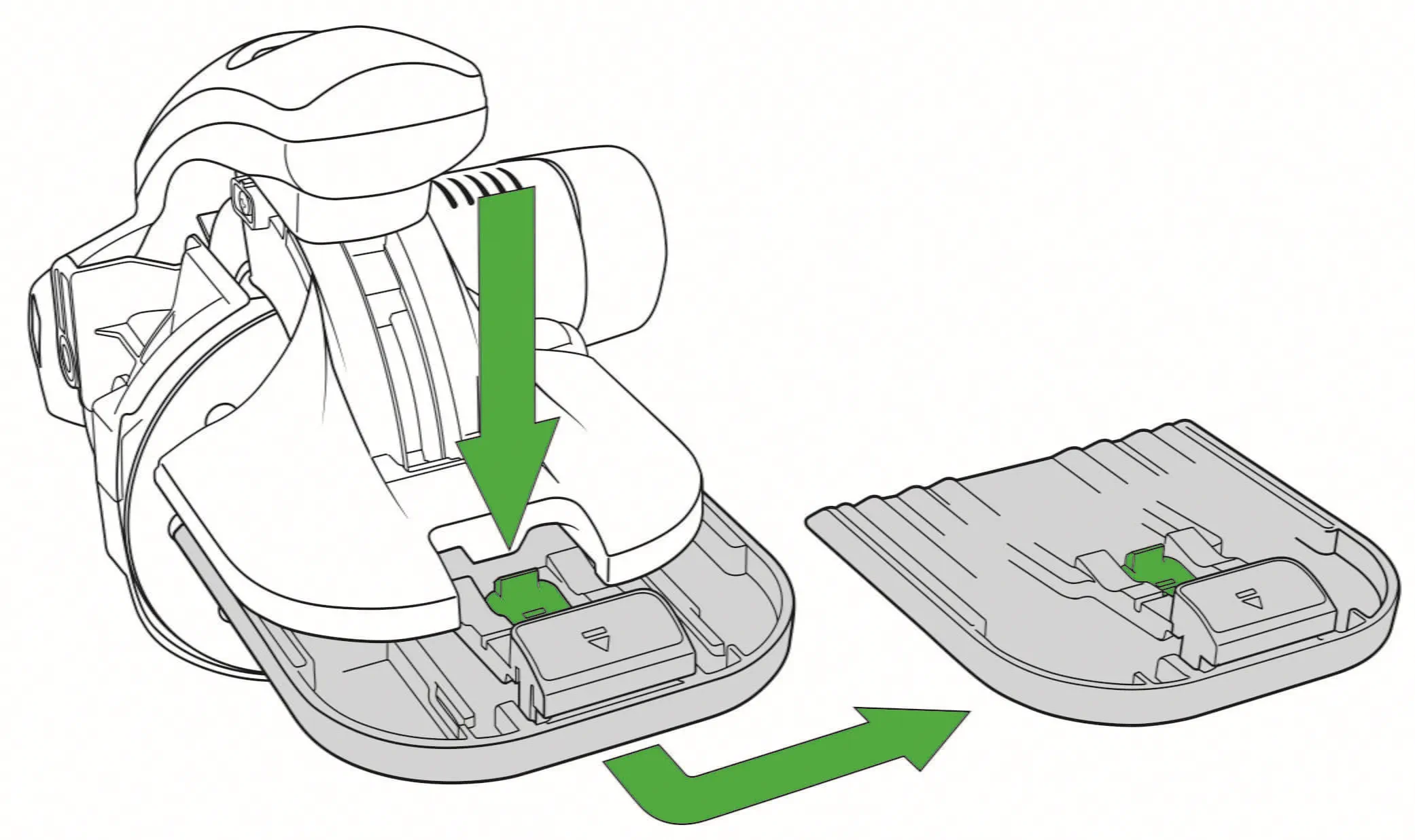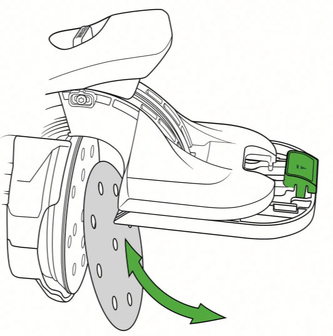 Abrasive wheels can be replaced easily, by pressing the green functional element on the base runner and pulling the base runner outwards. The abrasive can then be easily replaced.