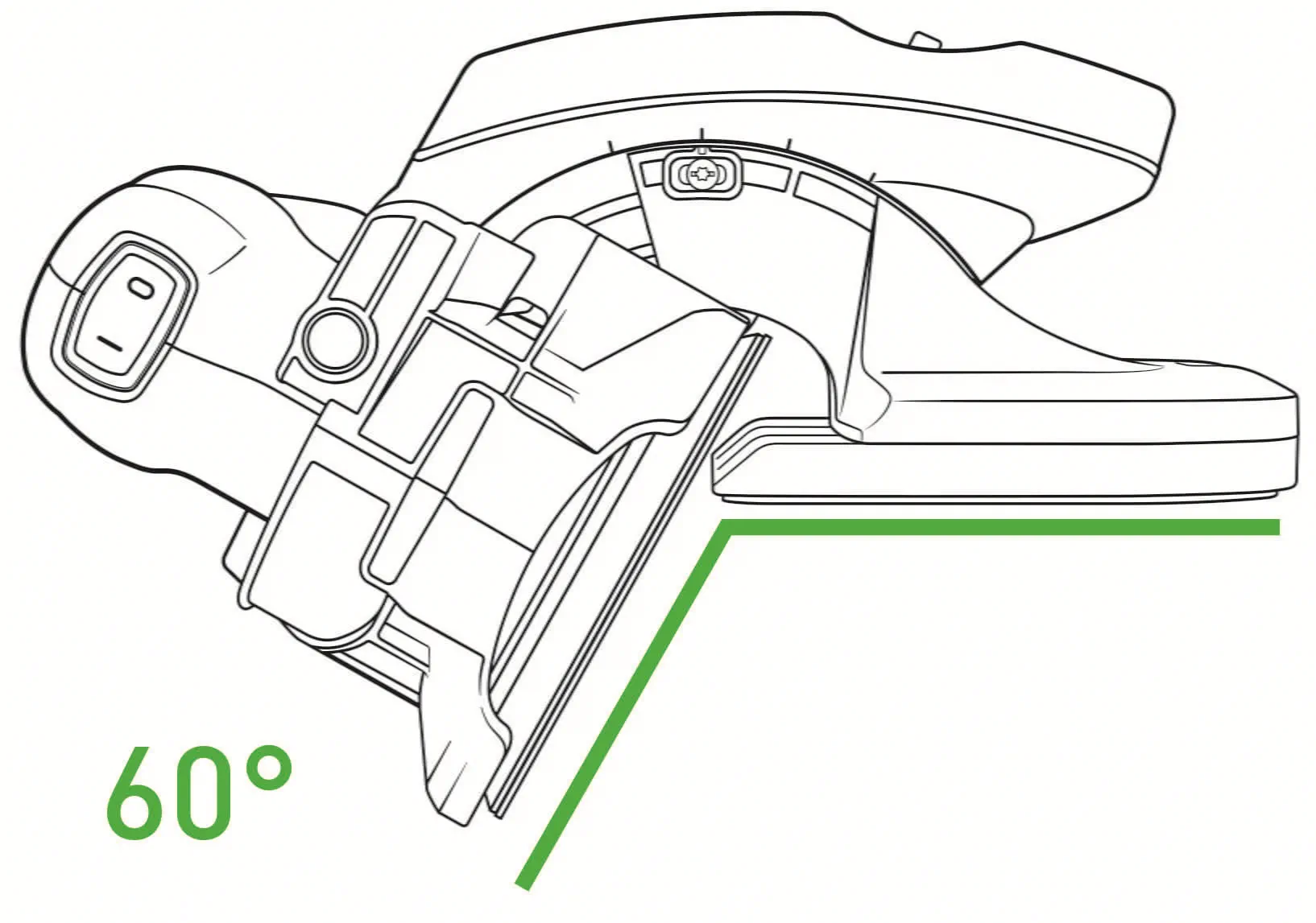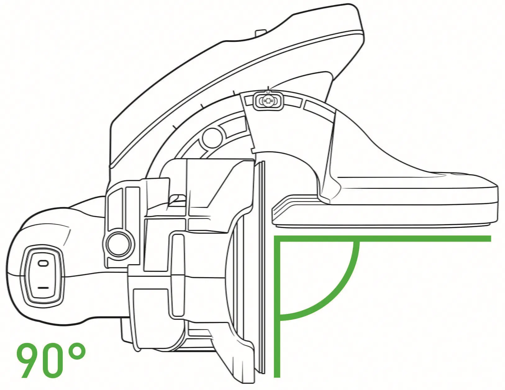 The angle adjustment makes the edge sander versatile; this feature enables even free angles to be copied and locked without tools. For the highest degree of precision, there is an adjustable angle display. This allows you to sand angles ranging from 43° to 92° – whether the workpiece is small, large or bulky, narrow or wide (from 5 to 60 mm). With the set version – consisting of an ETS 125 eccentric sander or the ETSC 125 cordless compact sander and the AH-ES-ETS/ETSC positioning aid – the angle display has already been set. If you subsequently fit your ETS 125 eccentric sander or ETSC 125 cordless compact sander with the AH-ES-ETS/ETSC positioning aid, the angle display must be calibrated after it is first fitted onto the sander. To do this, the sander must be set to Hard mode and the angle lock rotary knob must be loosened. You can then also set the angle to 90° using a measuring tool. Once the sander has been set to 90° as shown by the measuring tool, move the angle display until the display points to the 90° marking.