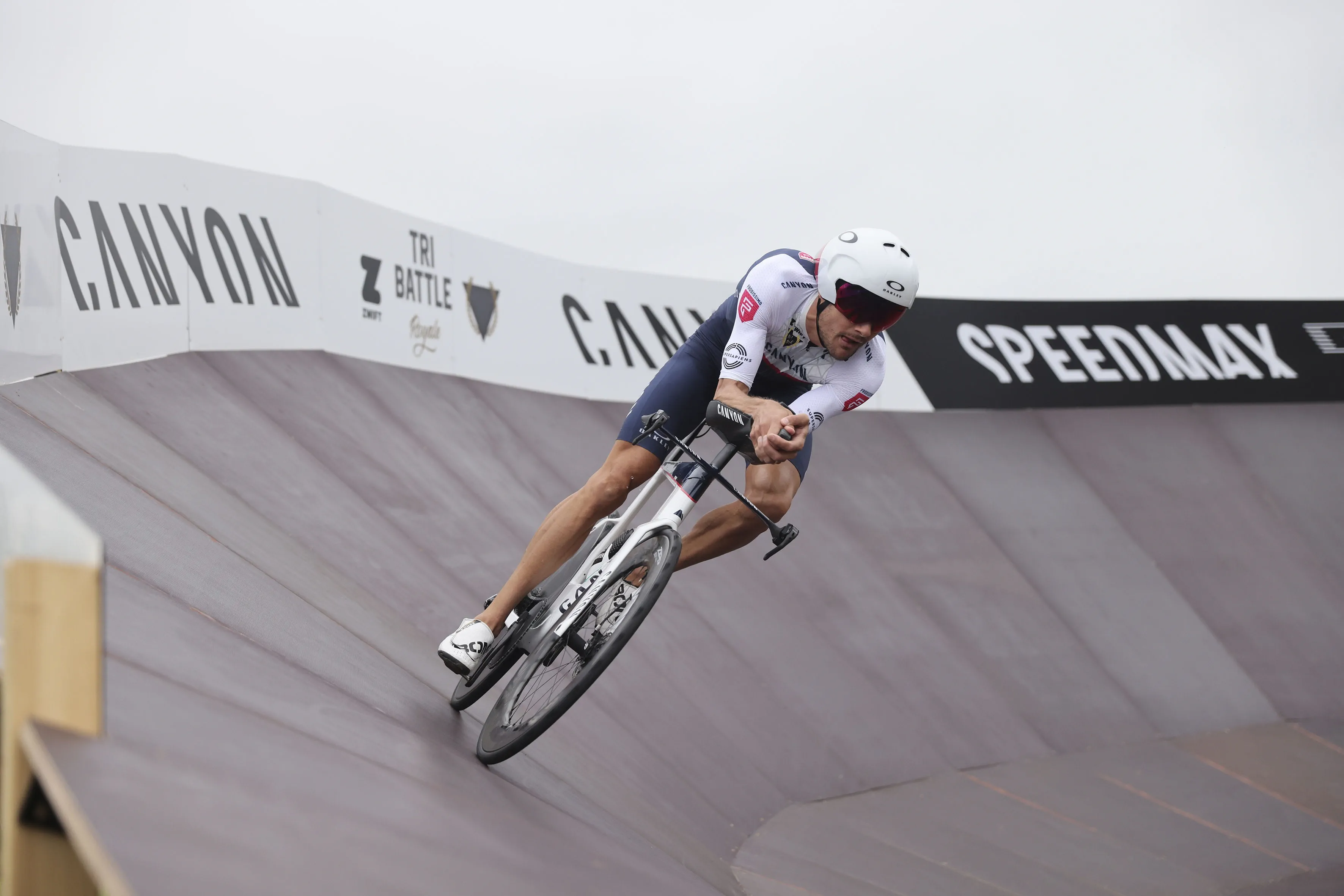 "The right material and the right tool – that's what it's all about," explains Rues, on the secret of their success. Mobility at work and the time factor play a crucial role. This is the same for all action sports projects, from absolute beginner to the extreme level. And let's not forget the passion that the action sportsmen bring to each and every project. Unusual projects can be great fun. Especially because we first need to familiarise ourselves with new things, before implementing them with the same professionalism we employ in all our projects. There was a good reason why the "Tri-Battle Royale" and the "Canyon Turn" were created in the Allgäu region. Schneestern would have built the steep bank differently anywhere else, but the Allgäu region has built an impressive reputation in the world of triathlon. Jan Frodeno and Lionel Sanders swam 3.8 kilometres in the Großer Alpsee lake near Immenstadt, then covered 180 kilometres on their bikes and lastly ran a distance of 42.2 kilometres – the landscape is almost made for this challenge and provides the ideal terrain for top athletes. Plus Jan Frodeno recorded a new record cycling time for a long-distance triathlon: He completed the 180 kilometres in 3 hours, 55 minutes and 22 seconds, breaking his own world record by a significant margin.