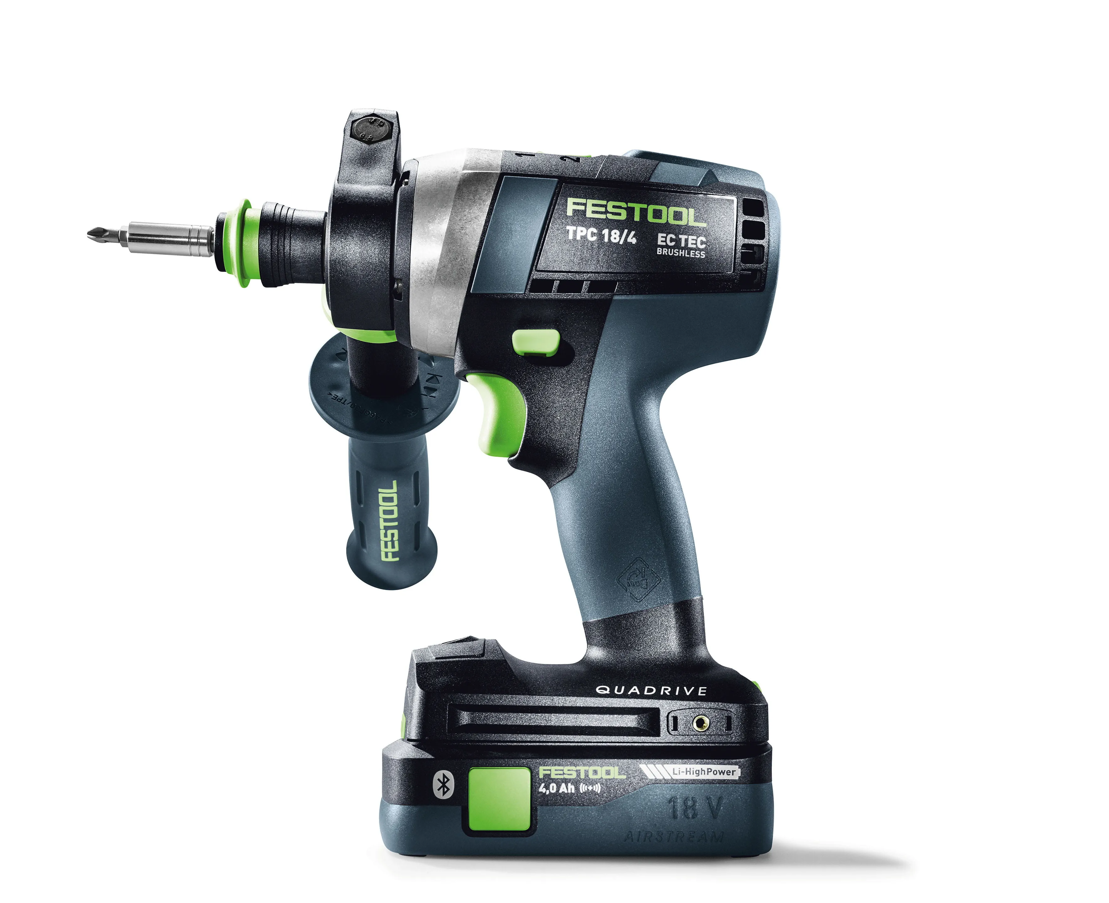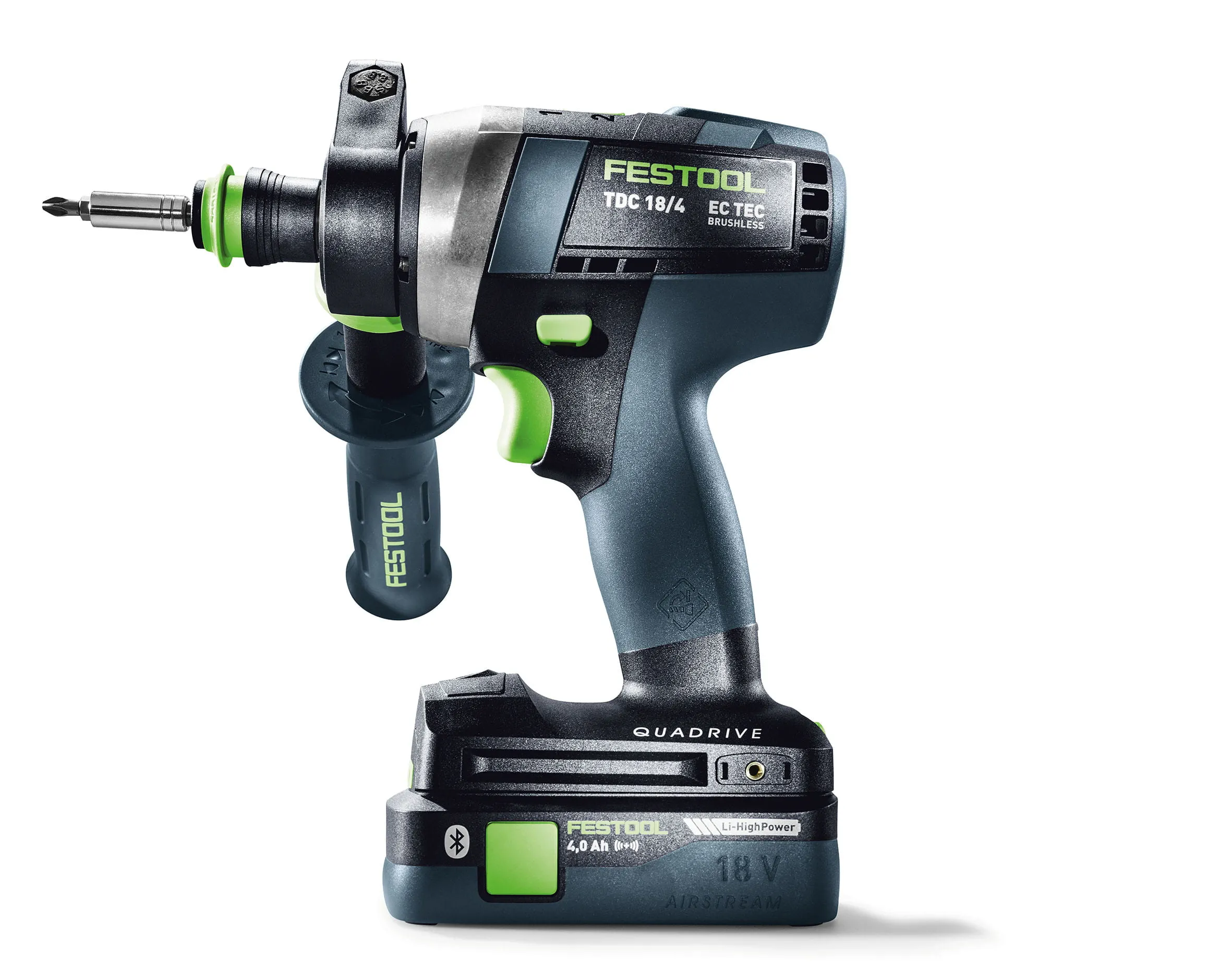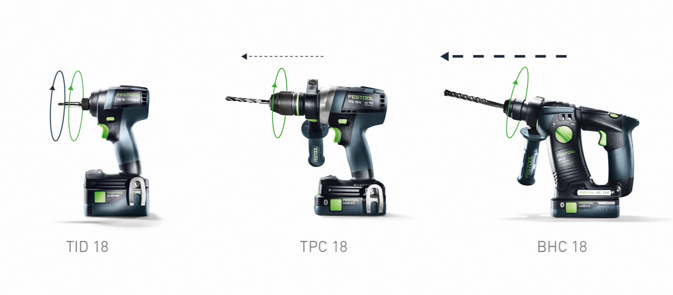 The range of applications that are possible with the QUADRIVE TDC cordless drill and QUADRIVE TPC 18/4 cordless percussion drill with four-speed gearbox is extremely versatile. The four-speed powerhouses are ideal both for screwdriving tasks involving high torques and large diameters as well as quick and powerful drilling. As a rule of thumb, the larger the drilling diameter is, the lower speed needs to be. Festool has developed a clever solution for switching between speeds, with both tools allowing users to switch from one gear straight to any other. Fixed stops ensure clear engaging, saving you time and guaranteeing full control while screwdriving.