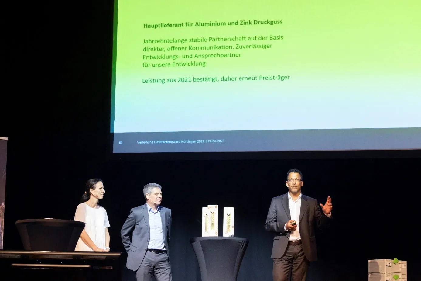 On Thursday, 22 June 2023, the TTS Group awarded its suppliers in the European region for exceptional performance - measured in terms of quality, delivery reliability, cost-effectiveness and partnership for the 2022 financial year. After the last three years, due to the pandemic, awards could only be presented online, this year the event took place in the K3N town hall in Nürtingen. Around 170 strategic suppliers from Germany and Europe were present.